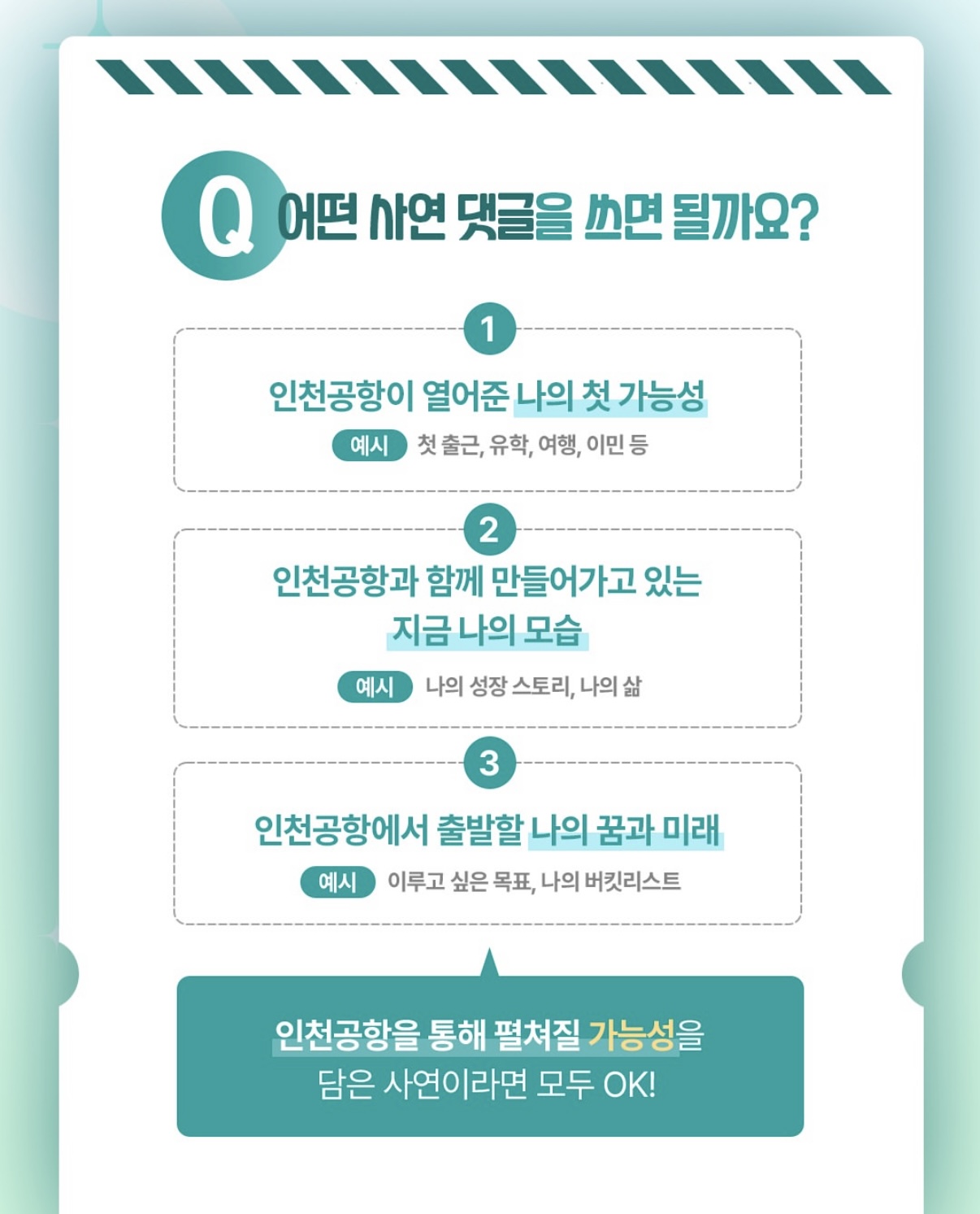 인천공항과 나의 연결고리를 담은 진정성 있는 스토리를 남겨보세요!